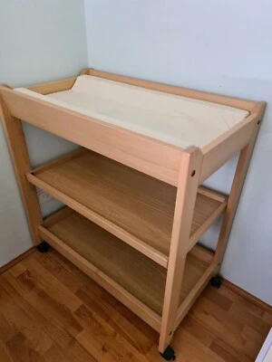 Boori country change table with changing cushion mat extras feeding pillow angelcare bath seat worth 60 2 baskets and 2 baby feeding bibs.